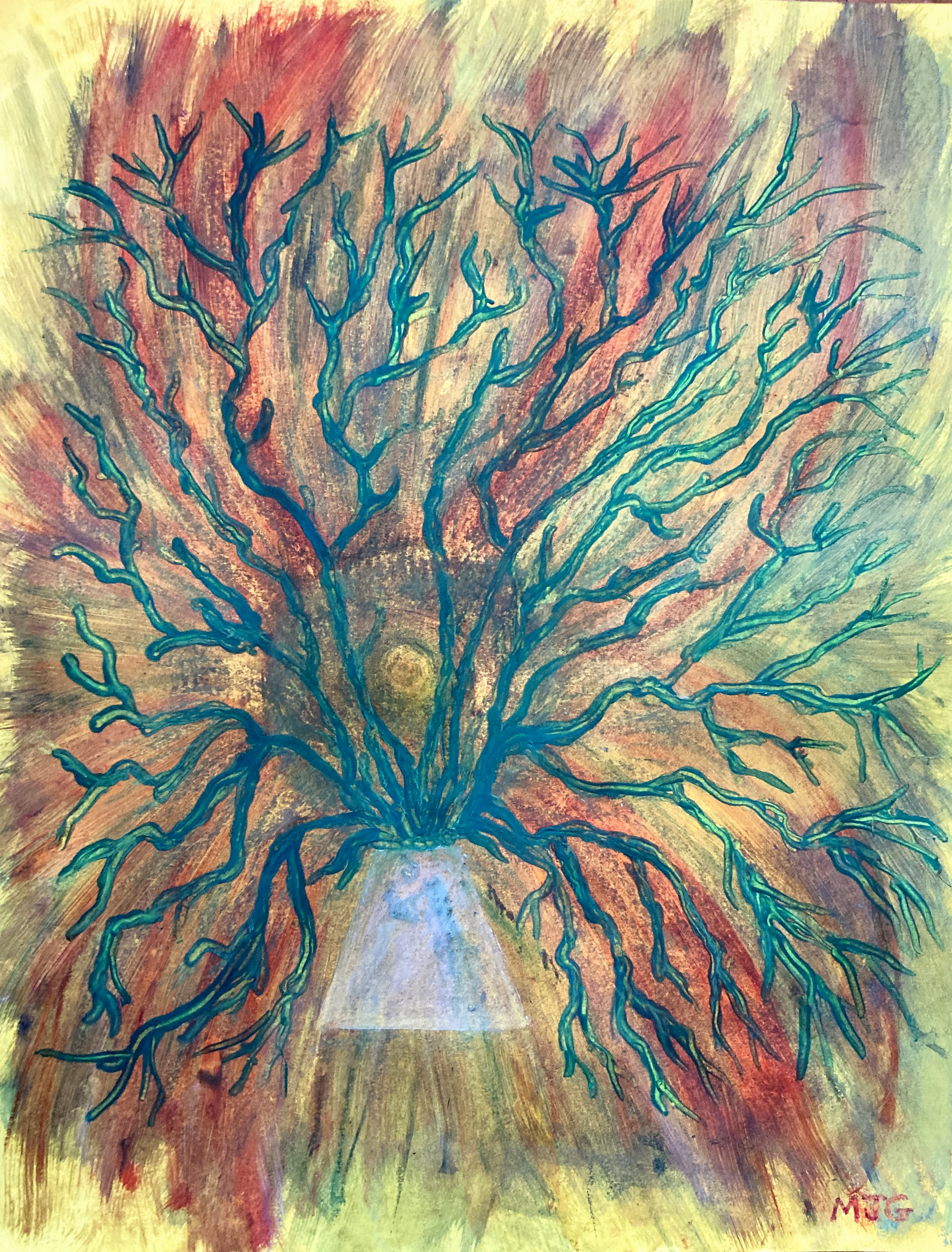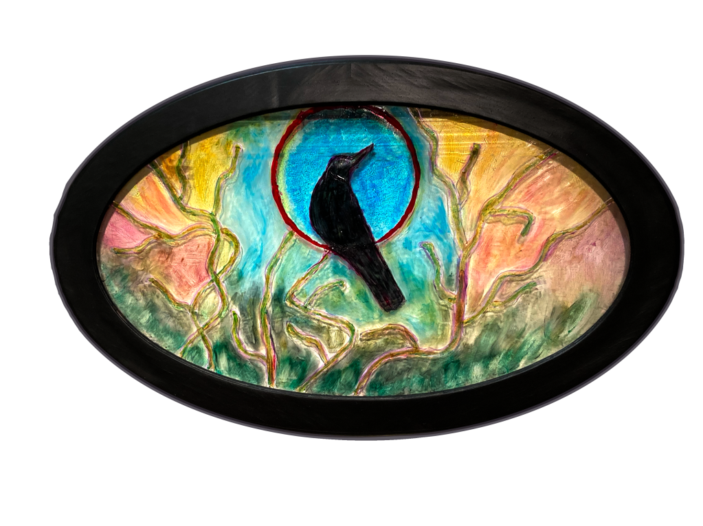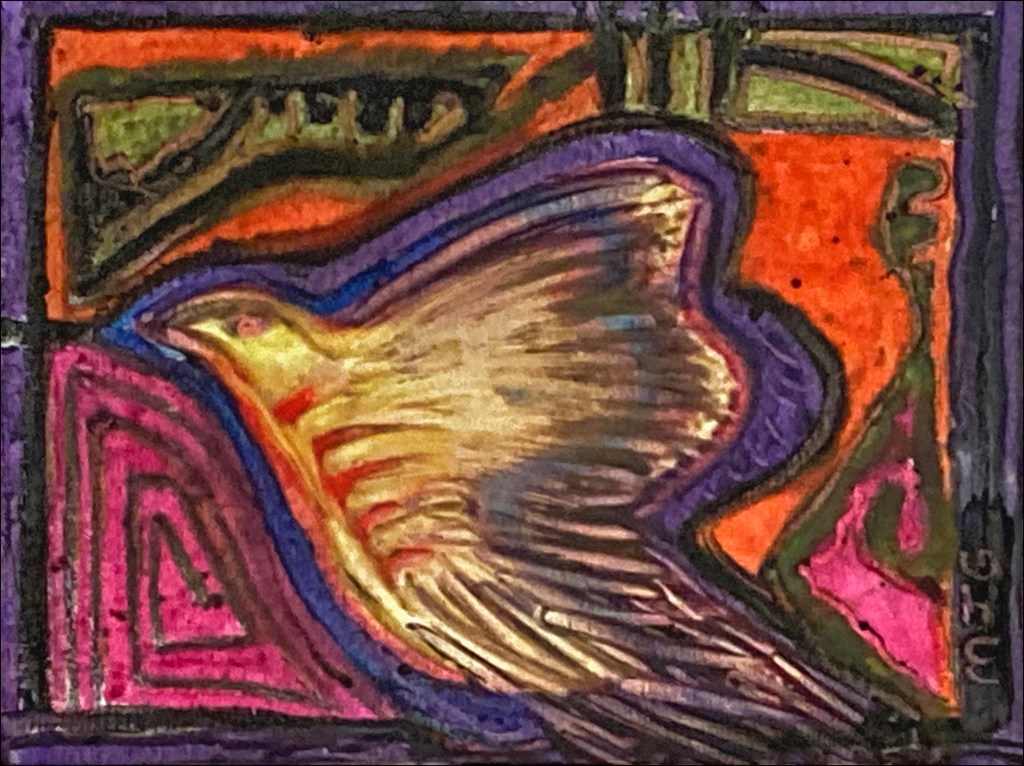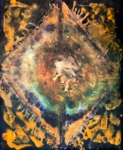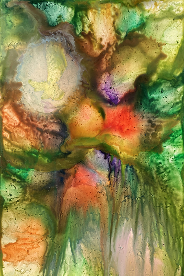 -Abstraction- “Prarabdha” – 5′ x 4′ framed canvas Acrylics & Alcohol Inks Between Structure & Chaos #2 – 26″ x 26″ Acrylic & Wax on paper Between Structure & Chaos #1 – 26″ x 26″ Acrylic & Wax on paper Atitlan – 31″ x 26″ Acrylic, Wax and Cut-Outs on Heavy Paper Mayan Spirit – 31″ x 26″ Acrylic on heavy paper Industrial 2 – 17″ x 12.5″ Acrylic and Wax on framed canvas Greenland Summer – 24″ x 16″ wax on poster board Emergence – 28″ x 24″ wax on poster board Discover Europa! – 22″ x 14″ wax and acrylic on poster board In Flight 22″ x 14″ wax on poster board Troposphere View – 11″ x 14″ wax and paper backing between glass panes Dream Sailing – 24″ x 16″ wax on poster board Sunset Dream – 16″ x 12″ wax on wood panel Genesis – 28″ x 24″ wax on poster board Sandbridge Summer – 14″ x 11″ wax on framed canvas panel Kenyan Royal – 11″ x 14″ acrylics and wax on canvas panel Atitlan Mola – 14″ x 11″ wax on canvas panel Ancient Orb – 14″ x 11″ acrylic and wax on stretched canvas Floral Rapture – 28″ x 24″ oils and wax on poster board Atitlan – 22″ x 14″ wax on poster board Eternal Dance 28″ x 24″ wax on poster board Raven Vision – 41″ x 25″ glass paint on oval glass in wooden frame